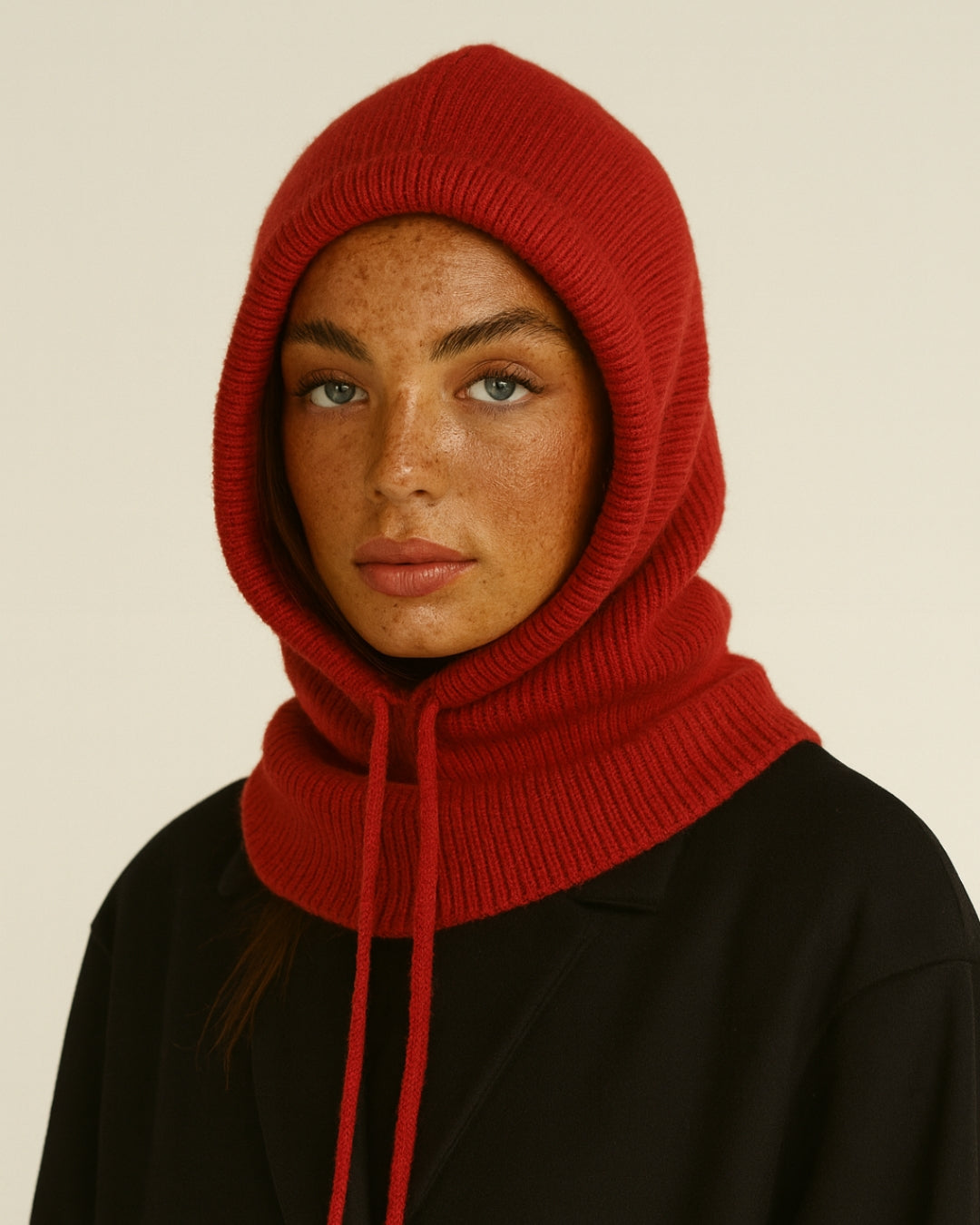 Cagoule en maille rouge