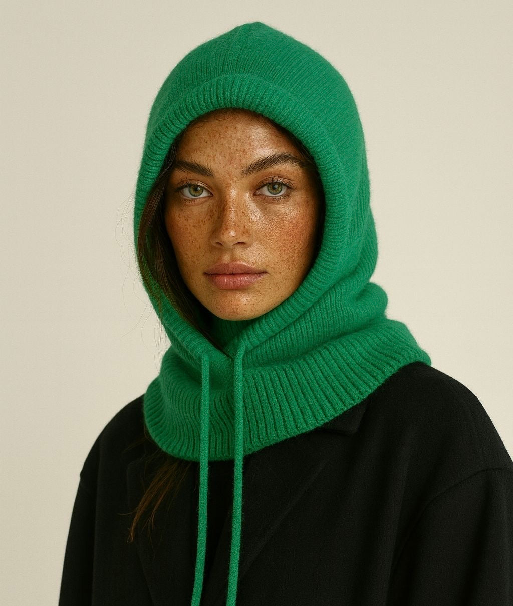 Une cagoule douce et chaude en maille côtelée, pensée pour l’hiver. Sa coupe enveloppante protège du froid tout en apportant une touche moderne et colorée à vos looks