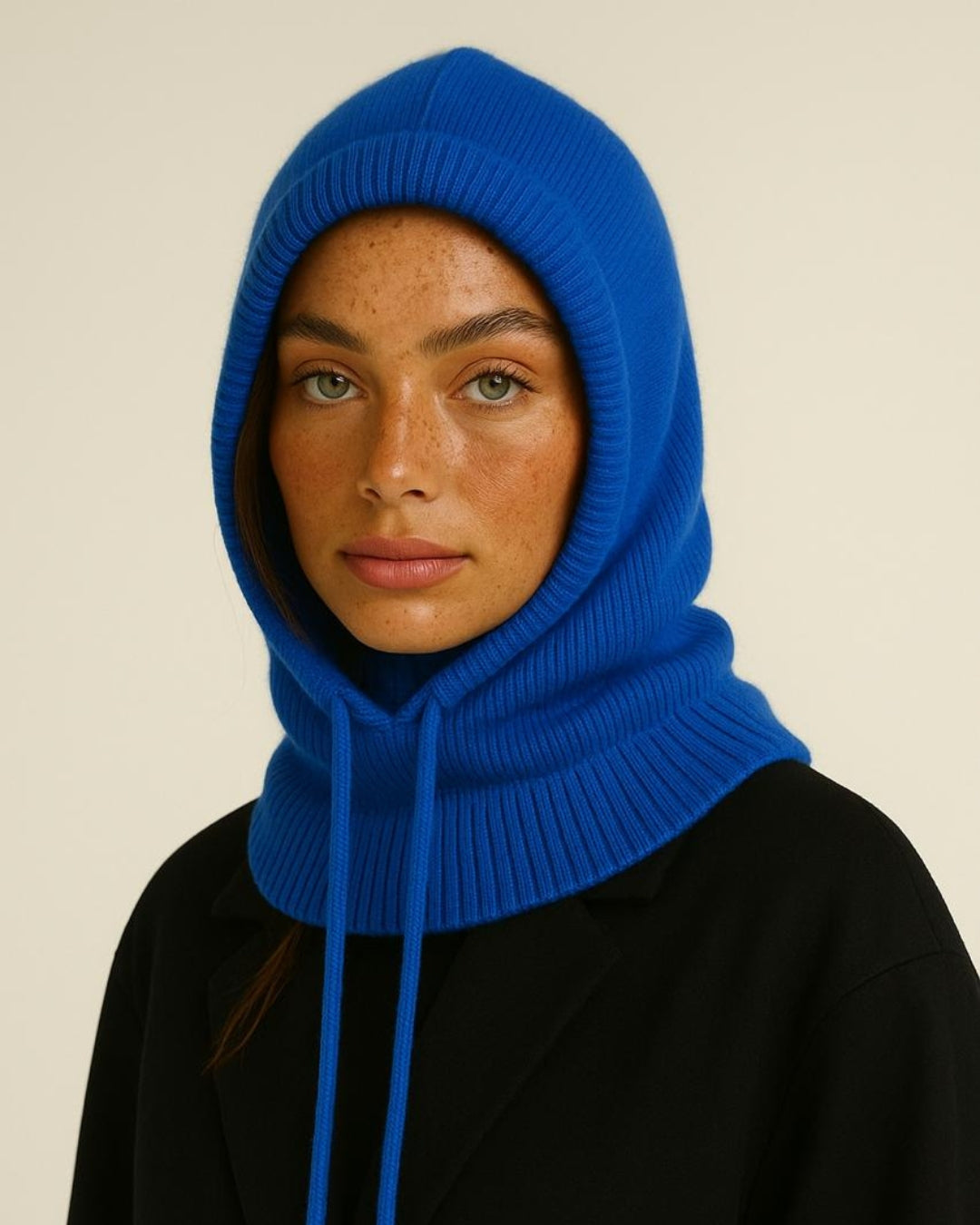 Une cagoule douce et chaude en maille côtelée, pensée pour l’hiver. Sa coupe enveloppante protège du froid tout en apportant une touche moderne et colorée à vos looks